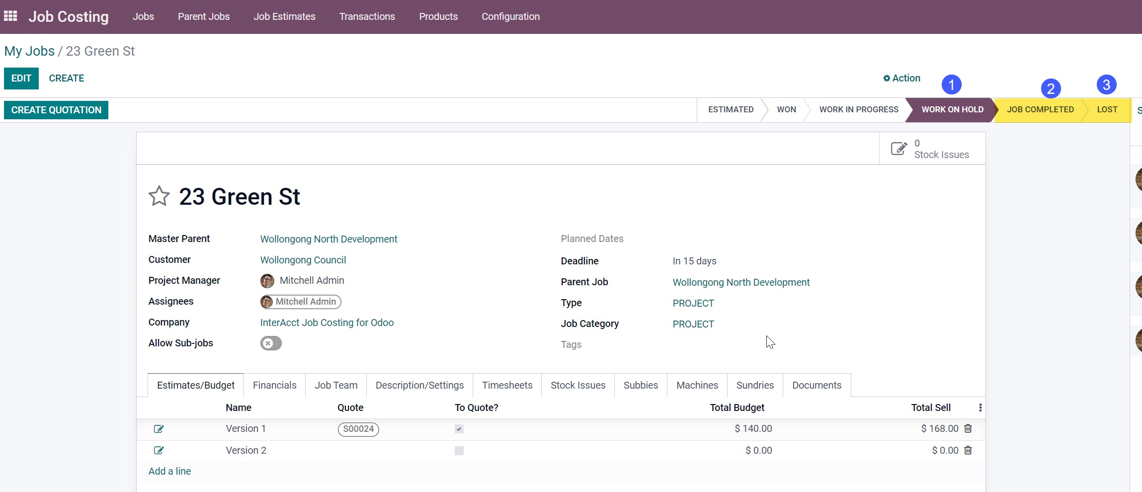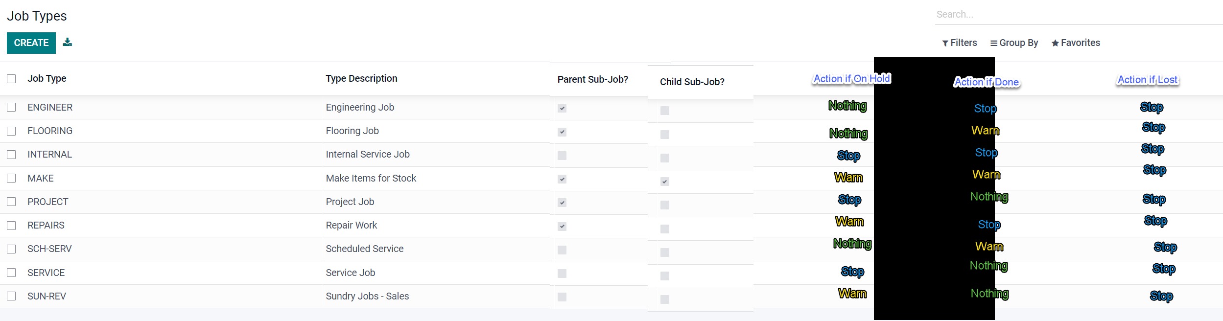 Would be nice to setup under the Job Type what to do when a user is wanting to do something (add/change/delete) to a Job which is marked as "Work on Hold", "Done" or "Lost"