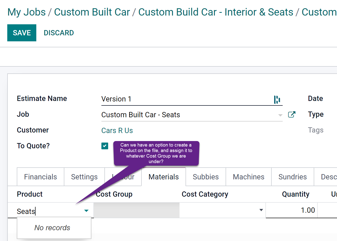 When creating a Job, it would be good to create a Job Estimate at the same time