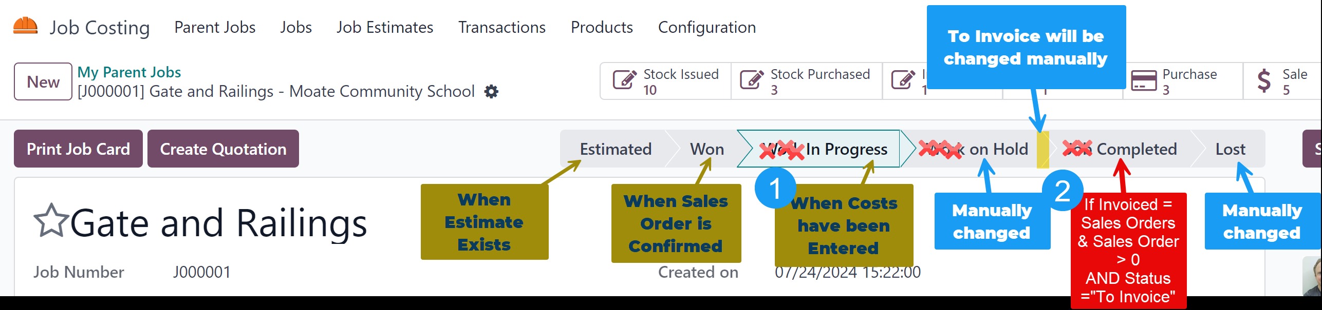 2. Any Actual cost is added to the Job. Timesheets, Stock Issues, Sundry, Machine, Subbies etc.