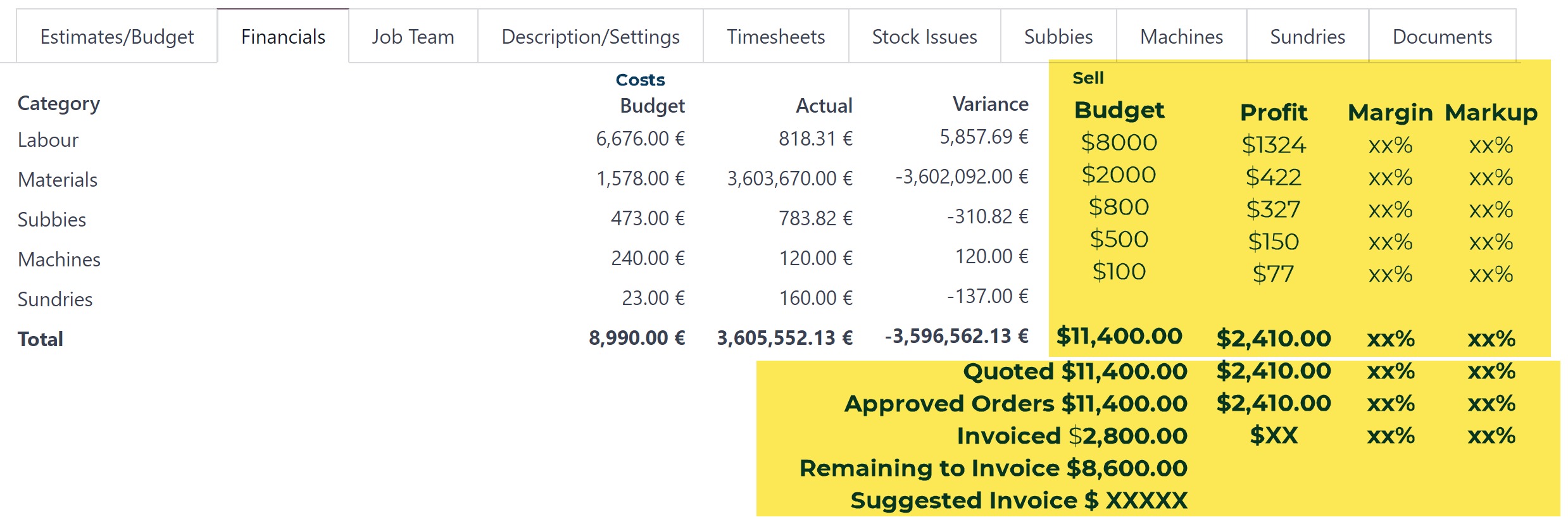 1. Budget Sell/Profit/Margin/Markup per Cost Group