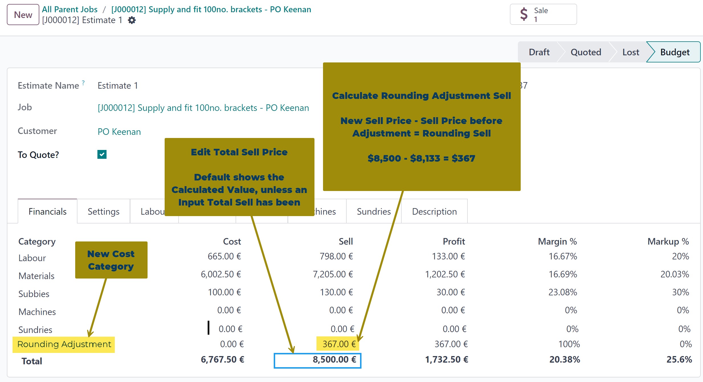 This has to allow for changes to the Estimate After the Total Sell has been entered, so for example.