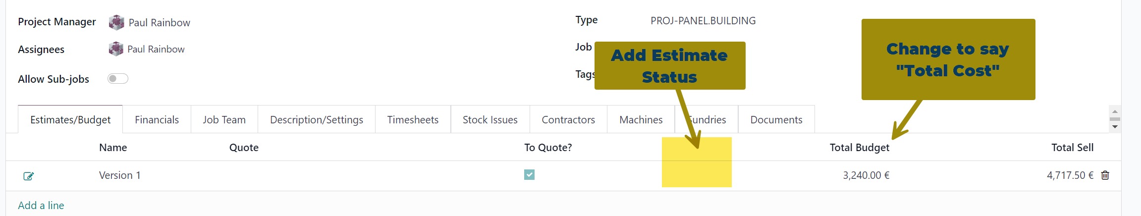 2. Change "Total Budget" to be "Total Cost", as if it is not in the Status of "Budget" it is only an Estimate Total.